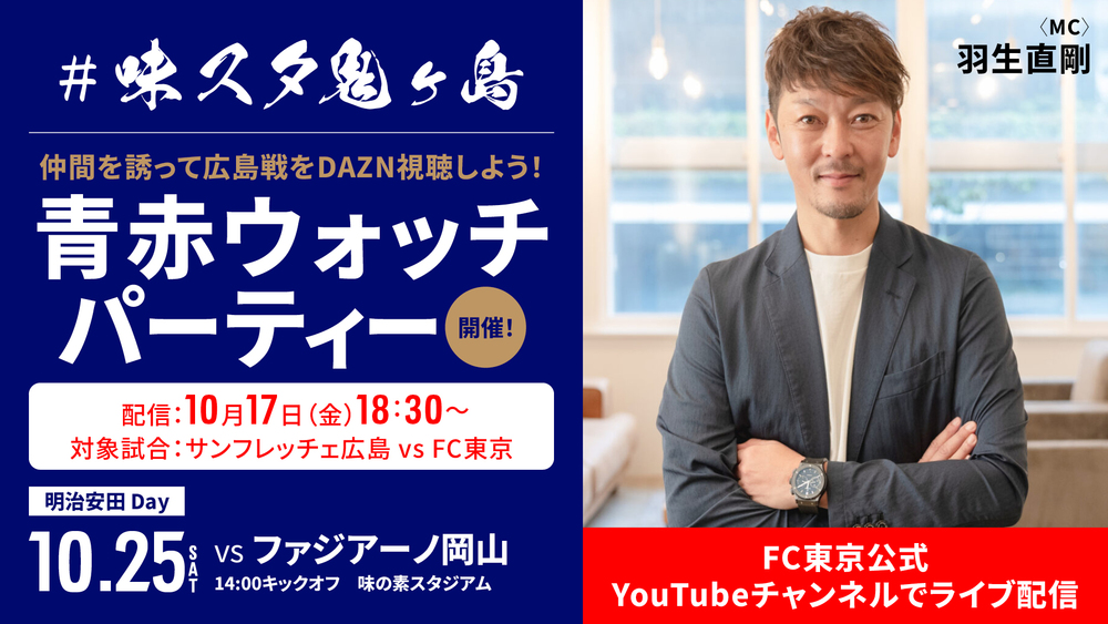 即使是不太了解足球的人,只要和喜欢FC东京的你一起观看,肯定会成为“伙伴”。我们将直播一场适合从足球观赛初学者到FC东京球迷和支持者广泛享受的观赛派对。请务必邀请朋友和家人,一边观看DAZN,一边享受我们的直播。