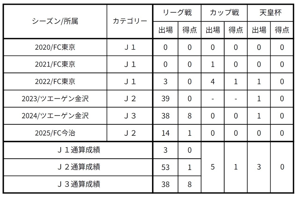 ※2020、2021赛季作为FC东京第二类注册球员出场