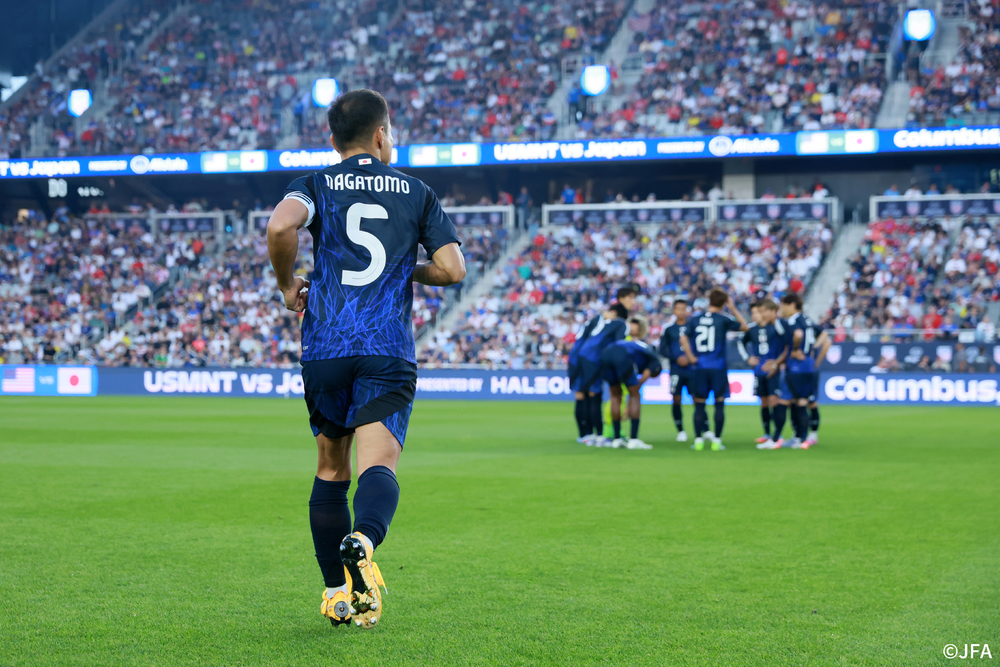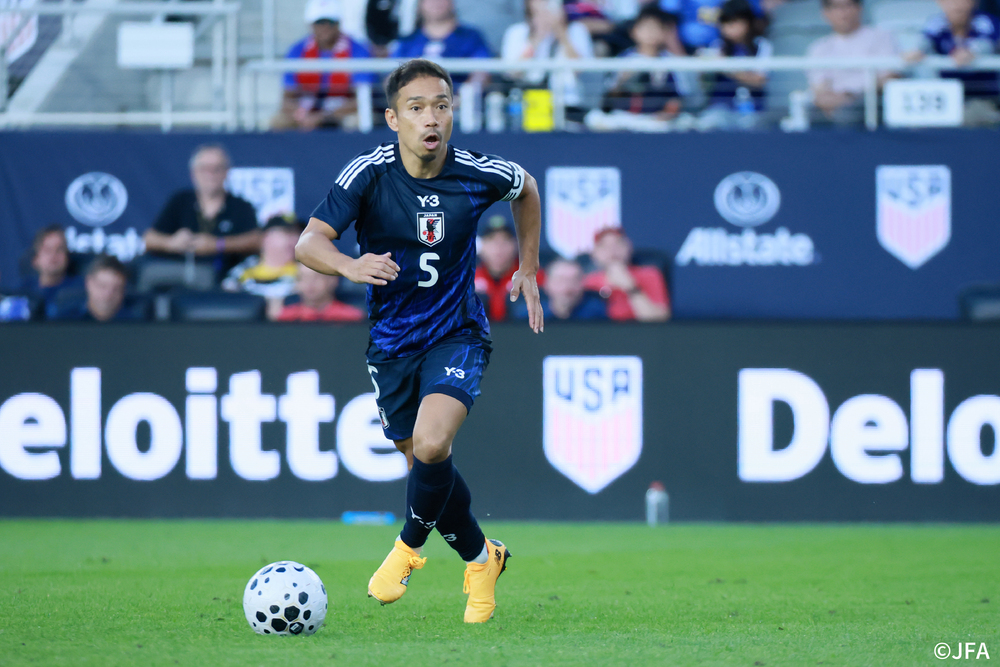 迎戰美國隊的比賽。左臂繫上隊長袖標,身穿5號球衣率先進入球場的身影映入眼簾。位置與7月東亞E-1足球錦標賽相同,擔任三後衛中的左中衛。由於日本代表隊的中後衛接連受傷,他說:「從看到這次成員名單開始,我就認為會是三後衛的左側,因此一直在做準備」,最終站上了這個位置的球場。