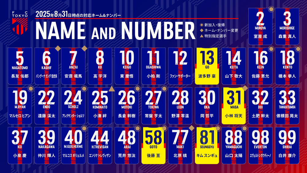 ※2nd/GK的2025賽季球衣將採用藍色的名字與號碼。
