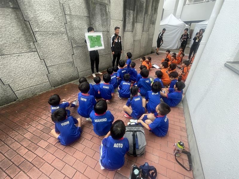在觀賞熱身時,山下渉太守門員教練與波多野豪選手還向正在觀賞的學員們踢球,出現了驚喜的場面♪
